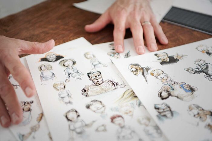 When you simply enjoy putting ink to paper, but instead of words, the lines are figures and scenes of life. I love capturing an expression or a moment in a scene, trying to bring my twist to the story. Inks, ecoline, watercolours or coloured pencils, mixed media is my home. Enjoy the trip.