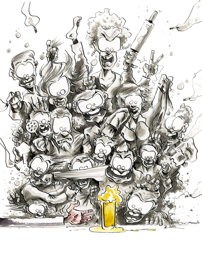 May 14, 2022The struggle is real – brining back memories of my time in the UK, close to Windsor, where the infamous phrases would cut the night, and everyone made a run to the bar. Monochrome background of the action to highlight the last standing beer of course.