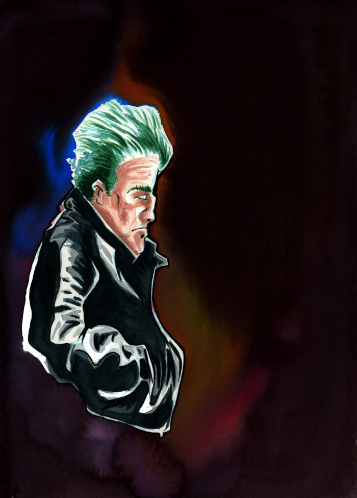 July 23, 2022Was in the mood for some leather effects and nuanced background. Not sure it its Elvis or Grease – but one of them must have stayed stuck on my childhood memory! The green hair? Akira.